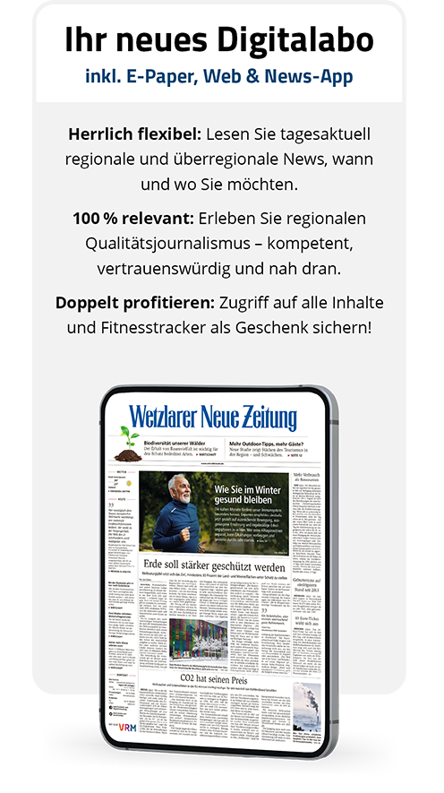 Mit dem digitalen Komplettpaket der Tageszeitung für Mittelhessen genießen Sie Ihre lokalen Nachrichten überall und jederzeit: als E-Paper, in Web & App, auf dem Gerät Ihrer Wahl. Sie lesen topaktuelle News, Hintergründe und exklusive plus-Inhalte. Und da zu einem fitten Geist auch ein fitter Körper gehört, schenken wir Ihnen einen hochwertigen Fitbit Versa 4 Fitnesstracker gratis zu Ihrem Abo dazu!